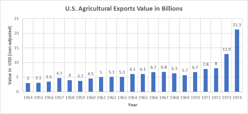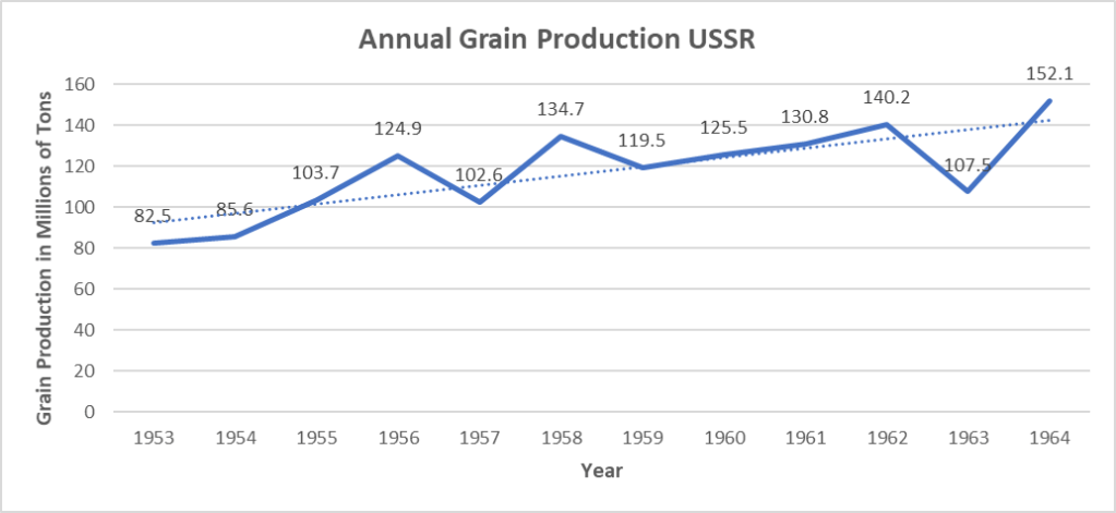 The Cold War was fought along many fault lines: Military, Political, and Economic. The United States agricultural dominance allowed for excess grain production, a pivotal tool in leveraging both allies and foes. Examining the various agricultural policies and “Grain Diplomacy” decisions yields interesting insight into core economic factors that eventually led to American preeminence and Soviet collapse.